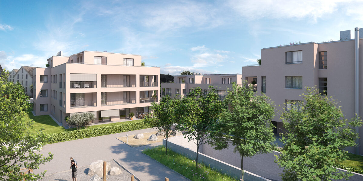 Zwi­schen den drei Mehr­fa­mi­li­en­häu­sern fin­den sich gross­zü­gi­ge und smart kon­zi­pier­te Grün­flä­chen. Die­se of­fe­rie­ren ei­ne ab­wechs­lungs­rei­che Be­pflan­zung mit Bäu­men und Ge­hölz so­wie ei­ne Spiel­gas­se plus ei­nen mit Spiel­ge­rä­ten aus­ge­stat­te­ten Spiel­platz. Das al­les er­gibt ei­ne An­la­ge, in der sich die Frei­zeit in vol­len Zü­gen ge­nies­sen lässt. Zum Pro­jekt ge­hö­ren auch ei­ne ge­mein­sa­me Tief­ga­ra­ge, di­ver­se Be­su­cher­park­plät­ze und Ab­stell­räu­me für Ihr Ve­lo.
